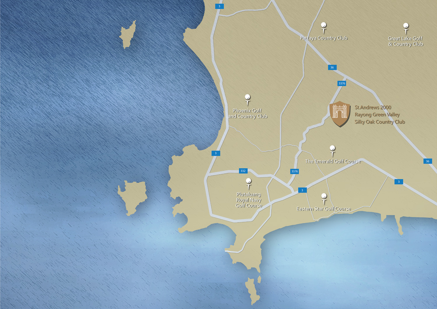 Upon a hilly and rolling vast land between Rayong and Chonburi, series of projects are created. The terrain of the land is absolutely unique, surrounded with low mountain range and high hills in the centre as the hub. Together with a town square called Plaza Pallacio, collections of contemporary Mediterranean-style villas and low-rise condominiums are woven into the rolling terrain at various heights. Having four golf courses in the vicinity with substantial real estate scheme, education facilities, hotels, clubhouses and other essential factors, the promise of the future is self strengthened. |
